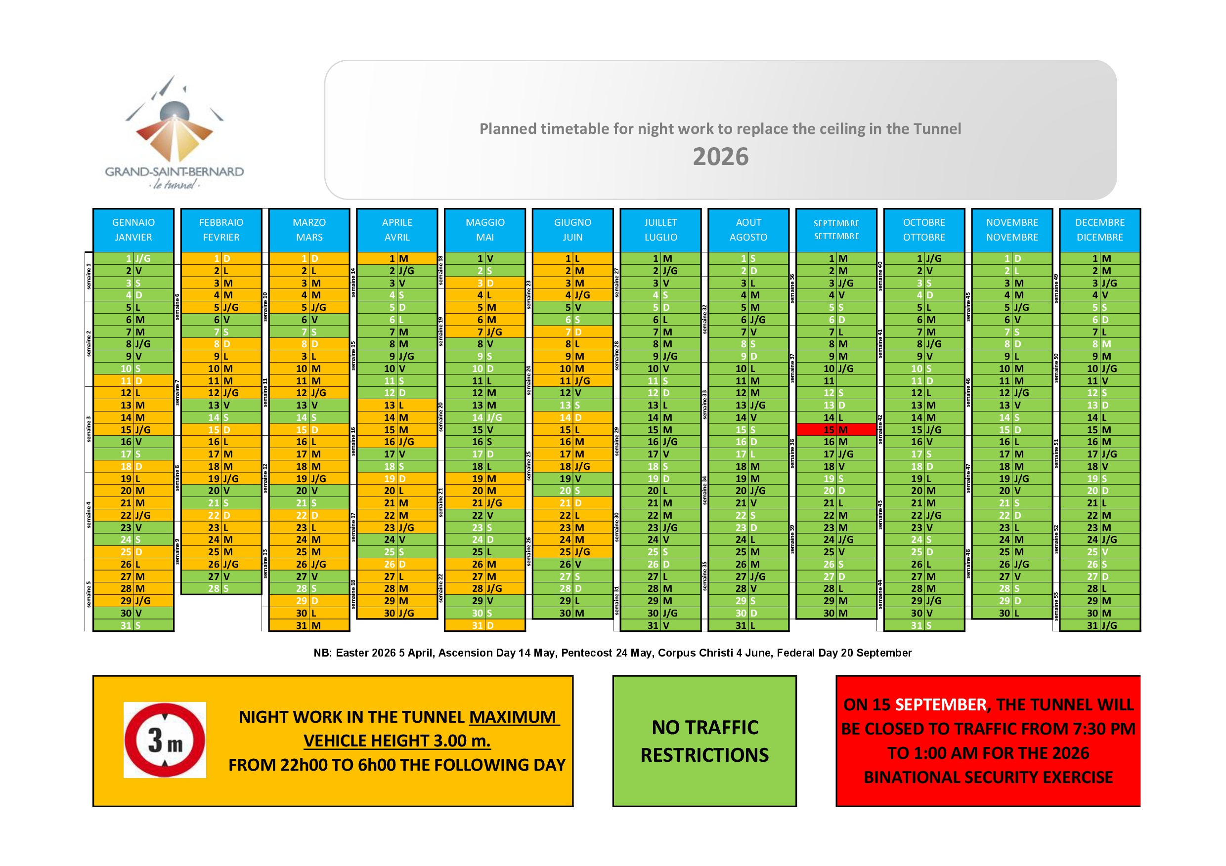 PROMOZIONE RITORNO GRATUITO Le seguenti manifestazioni danno diritto al ritorno gratuito al Tunnel del Gran-San-Bernardo. Su presentazione del biglietto “corsa